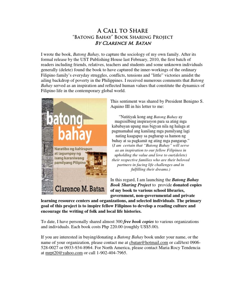 Batong Bahay Book Sharing Project January 20 2011 Philippines