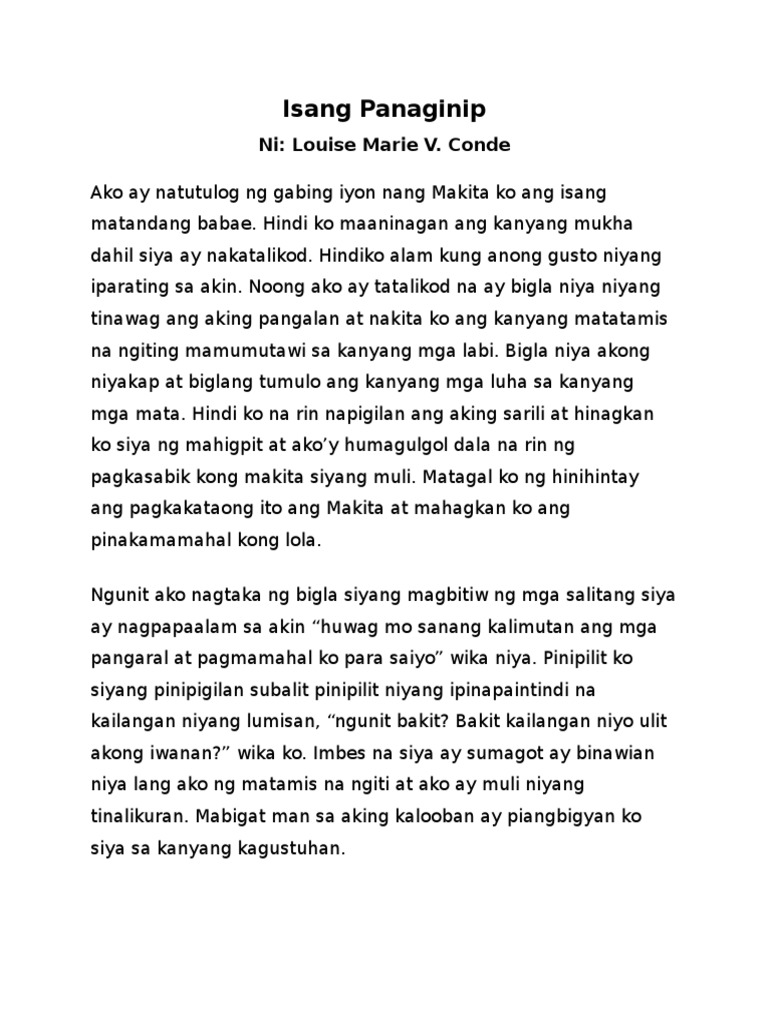 Doc Maikling Kwento Pangarap O Si Inang Sarina Solo And Sarina Solo Academia Edu
