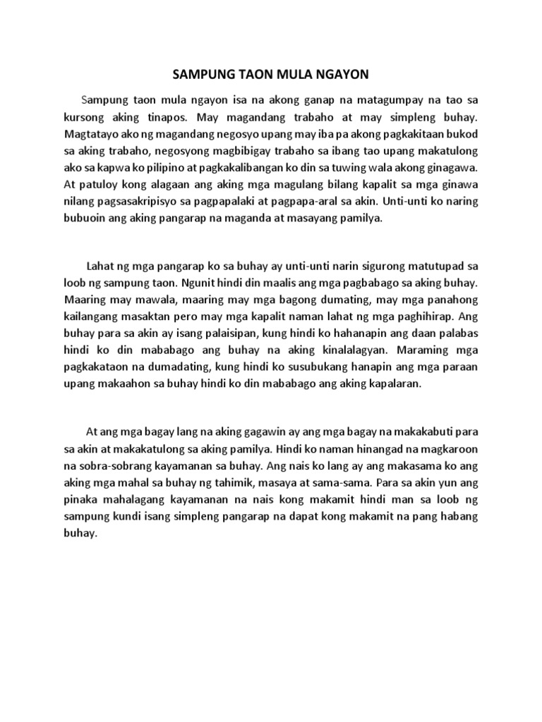 Sa ating buhay dapat ay mayroon tayong plano sapagkat ang planong ito ay ang magiging susi natin upang hindi tayo maligaw ng landas. NOONG Setyembre 12 1962 isinilang ako sa isang pamilya ng debotong mga Komunista na naninirahan sa Horn. Paano Ko Mararating Ang Aking Pangarap.